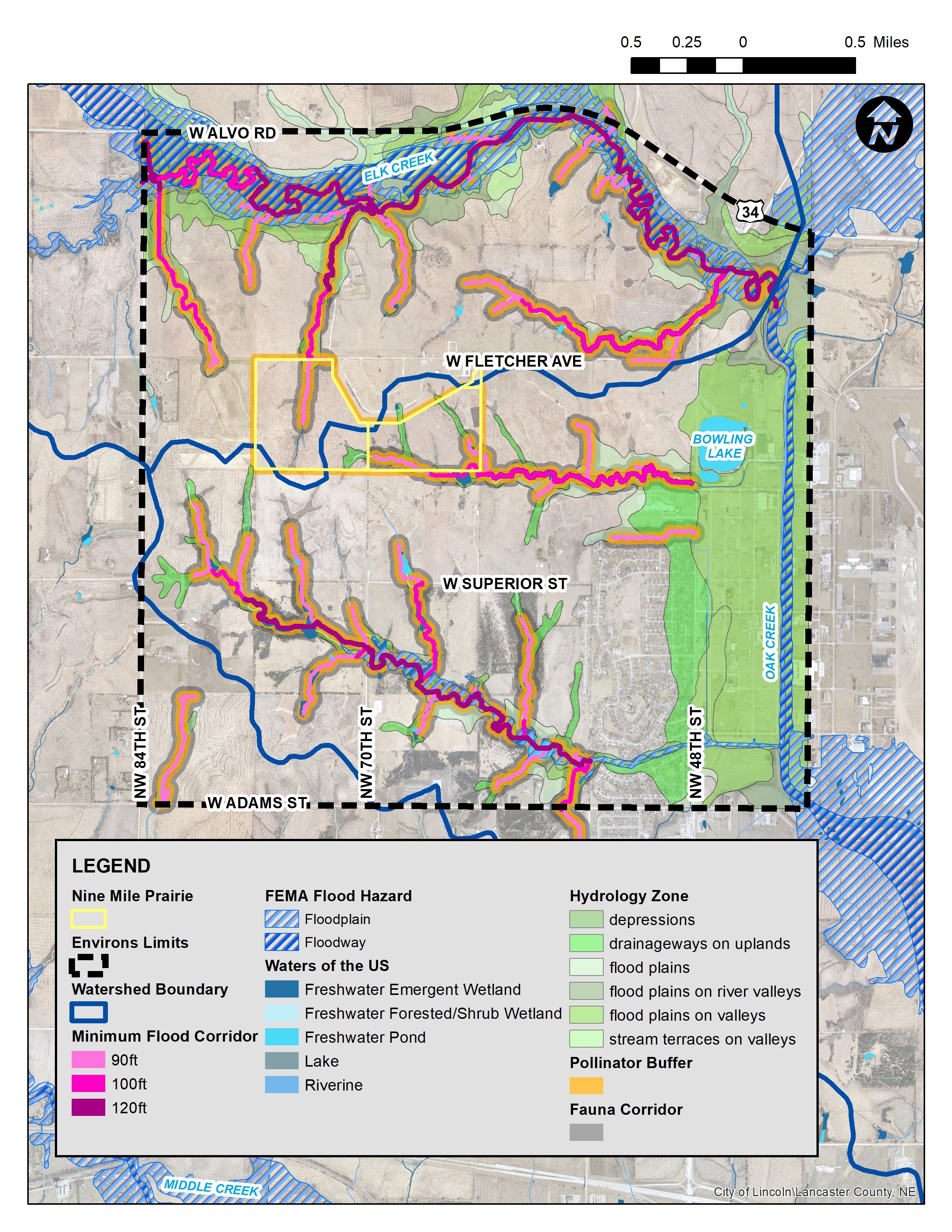 TFG was hired by the University of Nebraska-Lincoln Center for Grassland Studies to develop a master plan for the environs near Nine-Mile Prairie on the northwest edge of Lincoln, Nebraska. TFG developed a methodology for desktop and field level investigation/​evaluation of sensitive biological resources within the approximate 30 square-mile planning area. The project: